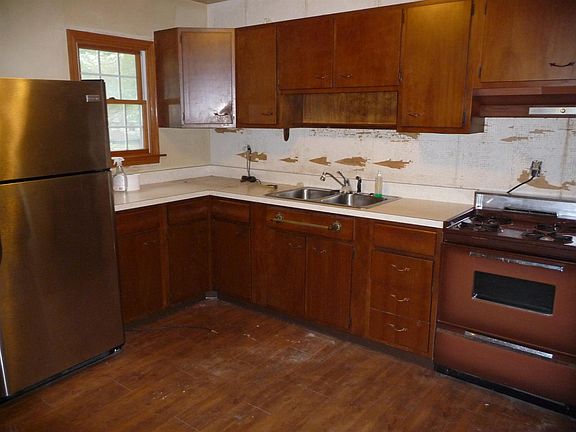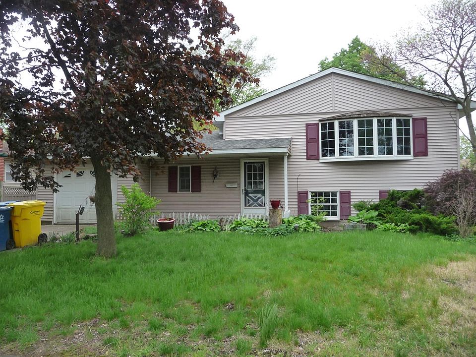 Big 5 bdrm home with remodeled upper bath; bay window in living room; sliders in office which lead to large patio and fenced yard; lower level features huge dry bar; newer windows and roof; appliances included - house needs remodeling; FHA 203(k) loan would work for this house, but not a regular FHA loan.