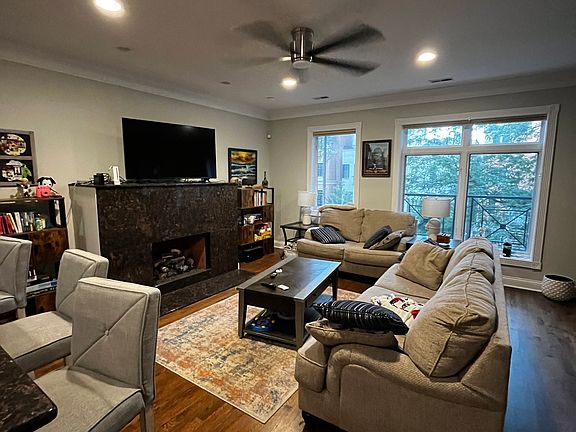 Newly updated master bathroom and upgraded kitchen. extra large 2 bed 2 bath that has a lot of space and a lot of natural light. Personal balcony off back of the unit as well as shared rooftop deck. Also has a parking spot, easy street parking, in between the red and brown line stops, and really nice tree lined street. Owner pays for water. Renter pays for gas and electric. No smoking. Parking in garage is for small car but can be included in rent