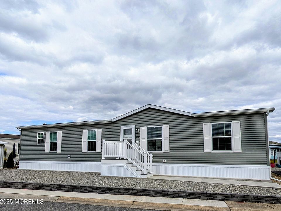 Currently available, new construction - beautiful 2 bedroom, 2 bath mobile home soon to be landscaped and ready to be yours! A spacious living room is ready for your personal touch, leading into a full dining room and expansive chef's kitchen, complete with a hearth wall, pasta sink, ample cabinetry, stainless steel farmhouse sink with garbage disposal and breakfast nook with plenty of natural light! Master bedroom features a walk-in closet, full bath with walk-in shower and linen closet. Second bedroom has a double closet. Home also has a utility room with washer/dryer. Full upgraded appliance package, central a/c, and forced hot air. Custom Trex decking entry at the front and rear of the home. Monthly land lease which includes real estate taxes is $641.72. Don't miss your chance.... to own this double-wide home with a number of upgrades.