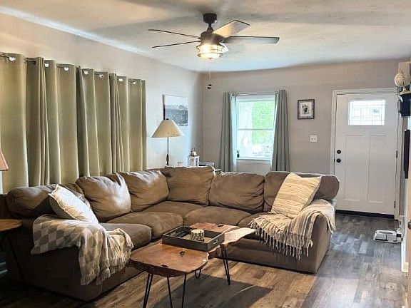 Enjoy one floor living in this beautifully updated ranch home with seamless laminate flooring throughout! Personalized with beautiful entry doors both in the front and the side welcome you home. As you enter through the front door, you enter a generous living room that opens to either the eat in kitchen or back to the bedrooms and updated bathroom with marble countertop and new bath. Newer windows throughout including glass block windows in the basement. The basement has plenty of room with a workshop, laundry area, and a den/workout room. The garage is a two car garage with a large attached storage shed. Enjoy a bonfire at night in your fenced large wooded backyard or grill up some hamburgers on your covered deck protecting you from the sun. All this home on 0.33 acres.
