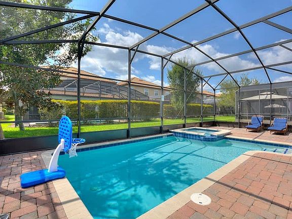 Nestled in the heart of Central Florida within the exclusive Villas at ChampionsGate Resort, this villa offers luxury, comfort, and endless fun. The 20,000+ sq ft Oasis Clubhouse features a resort-style pool with water slides, a lazy river, splash park, air-conditioned cabanas, a tiki bar, a restaurant, a state-of-the-art fitness center, a movie theater, a game room, volleyball courts, a playground, a tennis clubhouse, and an 18-hole golf course. Conveniently located just minutes from Disney World, Universal Studios, and Orlando's top attractions, with free parking and a complimentary resort shuttle available.