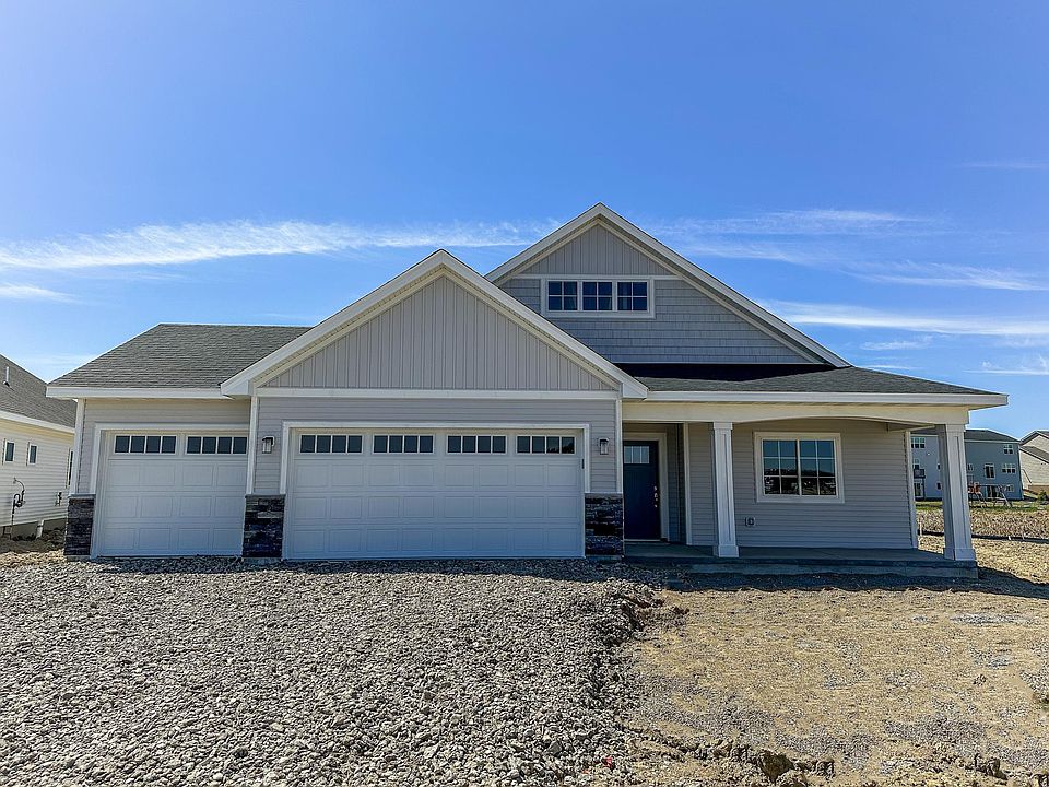 Under construction, scheduled for November completion, this Madison Villa offers upgraded elevation by JP Brooks awaits on a serene lot backing to trees for ultimate privacy. This home boasts a cozy fireplace and step vault, ideal for everyday living and hosting. The spacious open kitchen features upgraded cabinetry, sleek countertops, and top-tier stainless steel appliances, seamlessly connecting to the inviting living room anchored by a stunning electric fireplace with stone accents up to a floating mantle. The primary suite offers a vaulted ceiling, large walk-in closet, double sinks, and a spacious . Laundry room includes a wash tub. Enjoy the amenities of Fairway Greens North, with nearby attractions like Rum River BMX and Isanti Rodeo Dog Park. UNDER CONSTRUCTION - November 2025!