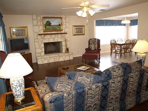 Sq. Ft. is more than stated by county. Beautiful, well maintained rock home on the Guadalupe River! New granite & tile in kitchen & new hardwood flrs. in living. Lg. rock fireplace in living. Great covered patio and deck area for entertaining. Lg. bedrooms & closets. 2nd living area up could be study or gameroom. Lg. deck & firepit overlooking river. Asphalt road down to the river with party slab & steps into the river. Most furniture conveys. Washer/dryer/frig. convey. Must see! Brokered And Advertised By: Keller Williams Hill Country Listing Agent: Carol Griffith