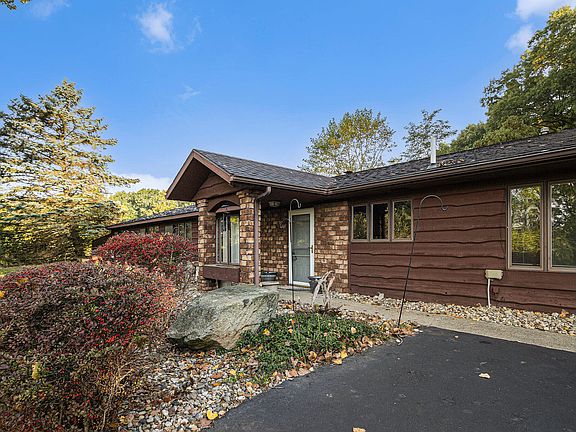 Escape to a tranquil haven where peace and quiet reign supreme. This charming countryside property, nestled on 3.6 acres, offers the perfect blend of comfort and nature's beauty. This home features 2254 sq. ft. of living space. The large kitchen with all in cabinets and counter space are fantastic. The living room has a brick wood burning fireplace and opens into the dining room. There is a wonderful main floor laundry room complete with washer and dryer. The primary bedroom is spacious in size and has a 3/4 bath. There are 2 guest bedrooms which are also ample in size . You;ll appreciate the extra room which could be used as a playroom, office or a possible 4th bedroom. There is also an enclosed porch area with a bar area with wine refrigerator and freezer. The exterior boasts 3.6 acres. of mature landscaping, winding paved driveway, an older barn with 2 lean to's on each side. A small storage shed and large patio area for entertaining. You'll appreciate the privacy and serenity of this home. You'll appreciate the wildlife and views from this home. This home is being sold as is where is. Sellers have never lived in home. Home is serviced by Midwest high speed internet. Professional pictures coming soon. This home is a partial berm home covering the rear of the home.