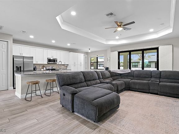 Welcome to this move-in ready 3-bedroom + den, 2-bath home located in the desirable Buckingham Park neighborhood. Built in 2020 and offering over 2,000 sq. ft. of living space, this property combines modern style with everyday comfort. Step inside to find an open and inviting layout featuring tile flooring throughout and 8-foot doors that enhance the spacious feel. The den provides flexibility as a home office, media room, or guest space. The spa-like master suite is a true retreat with a luxurious soaking tub, his-and-her vanities, and a walk-in shower. Enjoy private lanai access right from the master bedroom. Additional highlights include a 2-car garage and a low-maintenance yard. This home is tucked within Buckingham Park, a peaceful and established neighborhood. Don’t miss the opportunity to make this beautiful home yours—schedule your showing today!