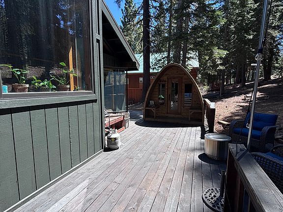 Renting house for a one year lease with the option to extend. Move-in date July 1. Garage/ADU is not included in the lease. Owners will be storing property in garage About the house: 1300sq feet 3 bedrooms (2 lower rooms and 1 upstairs) all have closets 2 full bathrooms (1 lower with deep tub and 1 upper) Mudroom entrance for ski gear, shoes, jackets Crawl space under the house for winter storage (bikes, patio furniture, etc) Covered stairway from the driveway Parking for 2-3 cars in driveway Washer/Dryer Full kitchen, dishwasher, electric stove/oven, refrigerator, microwave A loft, wood-stove, large backyard deck, and electric sauna The house is located in Tahoe Donner neighborhood. The backyard is private and the view looks into trees. Its a lovely street with many year round friendly neighbors. The house comes partially furnished with: 2 couches, 1 queen size bed, 1 queen size day bed, 1 queen bed frame (no mattress) The kitchen has pots/pans/basic plate wares and utensils, etc. 2 bedroom dressers/bed side tables and night stands Loft has a Roku television and TV cabinet $3200/month plus one months rent for security deposit Tenants pay electric and water utilities Garbage/Recycling is included in rent Cats and small dogs are welcome. Owner pays garbage and recycling Tenant pays water, electricity, snow removal
