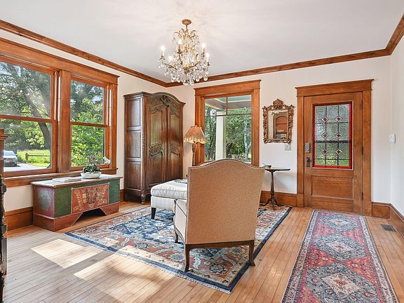 Violet's Farm is a 1900's Four Square home tucked into gated story book setting. The home is vintage with character and charm, with modern updates for convenience and enjoyment. Beautiful hardwood floors, crown molding, natural wood work, pocket doors, front and back porches. Plus newer windows, HVAC, roofs and an elevator! The property is completely fenced. With nine individual areas. Charming Stone building, large 24 x 60 garage, additional 1 car garage, animal barn and more. The serene setting is something that will be enjoyed in all seasons...