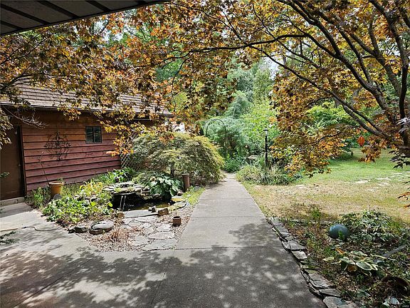 Surrounded by trees and nature sits this charming, rustic home on 5 acres! Home features an open floor plan for the living room, kitchen & dining area with cathedral ceilings and a stunning, tall, stone fireplace! Main floor also has 2 bedrooms, a fabulous, updated bath with jacuzzi tub and separate shower, a main floor laundry and a sunroom off the back that could also be utilized for a potting shed, sewing/craft room or a family room. 24' x 10' loft bedroom upstairs with loads of closet space and full bath! Detached 2 car garage with loft and fenced area in the backyard for kids or pets! The 48' x 10' covered front porch is perfect for unwinding and peacefully watching the wildlife in this serene setting! This could be your special place to call home! Additional Rooms: Sun Room