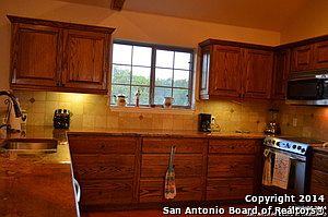 This is the best opportunity to own an affordable home in an upscale neighborhood! This home is perfect for family or to down-size. Builder's personal residence so attention to detail is obvious. Exposed beams in the kitchen/great room, a different coffered ceiling in ea bd rm, scored stained concrete throughout, a gourmet kitchen with amazing granite & custom cabinets. Unobscured views of the rolling tree tops of the Government Canyon State Park. Gated community. Home located on cul-de-sac for max privacy