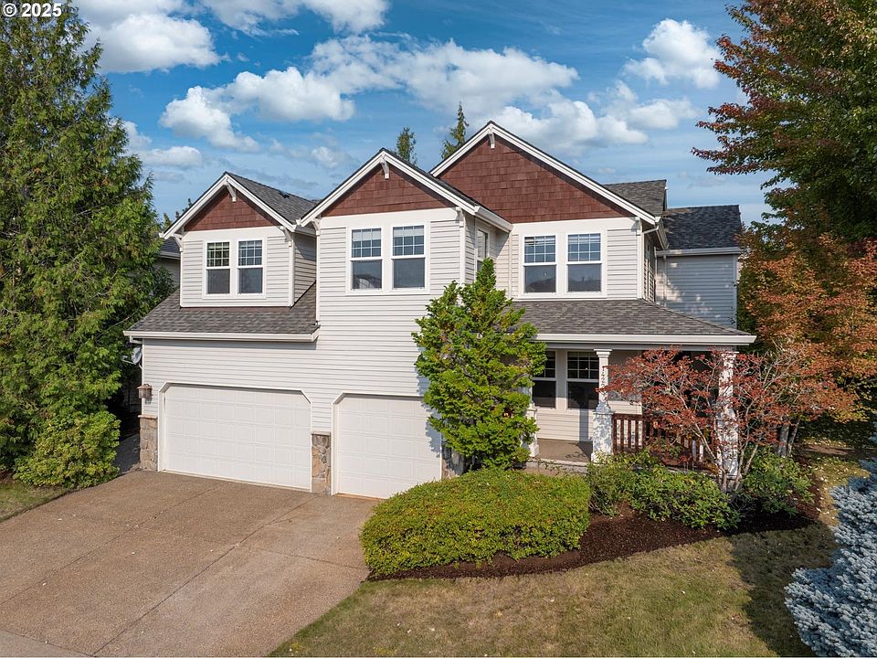Oakridge Estates traditional on corner lot with wrap around covered front porch. 2,752 Sq Ft 4 bedrooms + den and 2.5 bathrooms. Light filled two story great room opens to kitchen and sunny eating nook with slider to incredible yard. Formal living room, dining room and den with wainscoting and French doors. Upstairs features 4 spacious bedrooms or 3 bedrooms + bonus room. Primary suite with vaulted ceiling, walk-in closet and spacious bath with soaking tub and walk-in shower. Private and peaceful yard is a gold-level backyard natural habitat, certified by Columbia Land Trust & Bird Alliance of Oregon, and consists of approximately 75% native plants! Brand new roof, July 2025. 3 car garage. Neighborhood park, tennis courts and walking trails. Great Schools- Findley/Tumwater/Sunset.
