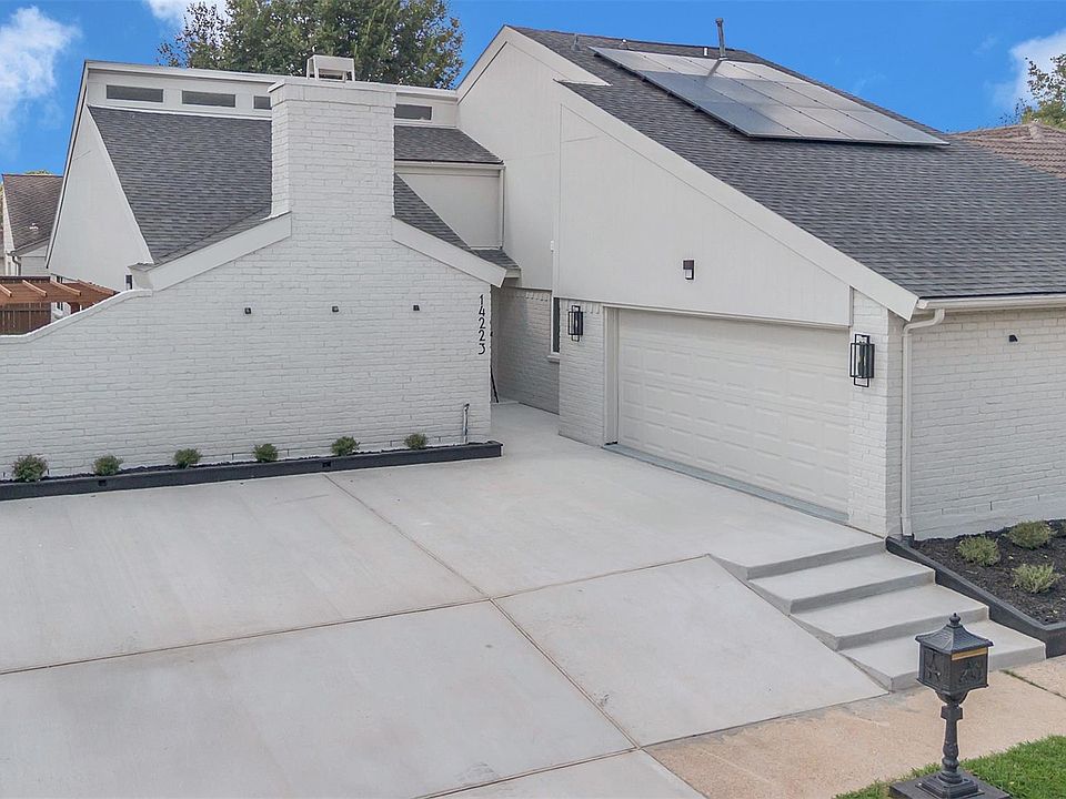 Energy Corridor - Never flooded, SOLAR PANELS FULLY PAID OFF, completely remodeled home, 4 beds 3.5 baths, breakfast, formal living, dining, game room, newly installed roof, new driveway, entry way, all new windows, doors, front metal door, interior/exterior paint. Features new light fixtures, newly engineered wood flooring, new appliances, blinds, and all remodeled bathrooms tub, showers, sinks, cabinets, all new vanities & cabinets. Kitchen boasts granite countertops, big sink, back splash, built-in appliances, new stove, dishwasher, microwave. Breakfast area, unique corridor atrium sunroom, exposed beams in dining area, & gas fireplace in family room. Spacious game room, upstairs bedroom with own bath. Outside, relax under side pergola. Backyard large enough for private pool. Great location, exemplery schools, near restaurants, easy access to all major HWYs. Area park, pool, tennis court, jogging and bike trails all for active lifestyles! A MUST SEE FEELS LIKE A NEW CUSTOM HOME.