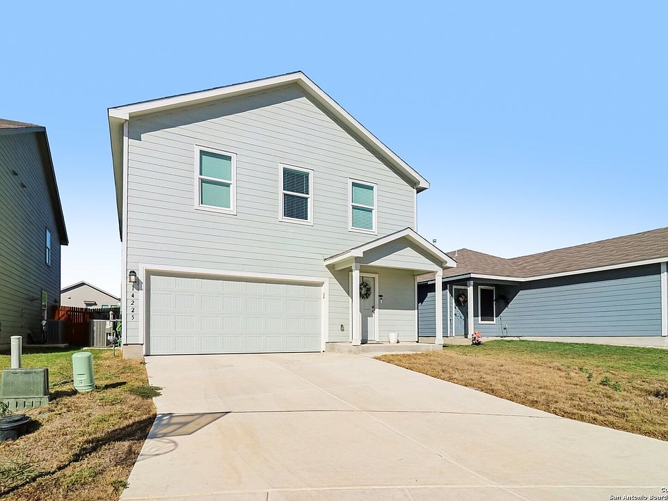 Welcome to 14225 Jersey Cow! Located in the highly sought-after neighborhood of The Silos, this beautiful home feels practically brand new at just one year old. From the moment you arrive, you'll appreciate the charming curb appeal and covered front entry that welcomes you inside. Step through the foyer, passing a convenient half bath, and you'll find yourself in the heart of the home, an inviting open-concept living, dining, and kitchen area designed for both everyday living and entertaining. The thoughtful layout offers just enough definition between spaces, allowing you to easily distinguish the dining area from the living room while maintaining that open, airy feel everyone loves. The kitchen features white cabinetry, granite countertops, stainless steel appliances, a gas range, and a spacious pantry, all arranged in a corner layout that maximizes both flow and functionality. The peninsula provides extra counter space that could double as casual dining if you choose to add stools. Upstairs, all bedrooms are conveniently located together along with the laundry room - no more hauling baskets up and down stairs! The primary suite offers a peaceful retreat with a full bath featuring a tub/shower combo, single-sink vanity, granite counters, and a walk-in closet. Two additional bedrooms and a sizable loft provide plenty of flexible space for guests, a home office, or a playroom. Outside, the backyard offers a level lawn ready for your personal touch - whether that's a garden, play area, or future patio space. Residents of The Silos enjoy access to top-notch amenities, including a pool, fitness center, clubhouse, and playgrounds. The neighborhood's prime location offers a straight shot to Lackland Air Force Base and an easy commute to major employers, shopping, and dining. Come see why this home and community are so loved!