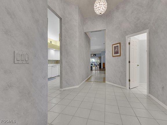 Additional features include a laundry room with cabinets and utility sink for added storage and convenience. The oversized 2-car garage provides extra room for storage or a golf cart. The Cypress Lake Country Club villas offer serene views of the Cypress Lake Country Club Golf Course but are not affiliated with the club. The HOA fees include flood insurance, there is no CDD tax, and the community has experienced no flood damage from any storms. The community pool is just steps away, and the location offers easy access to beaches (only 20 minutes away), hospitals, restaurants, and shopping.