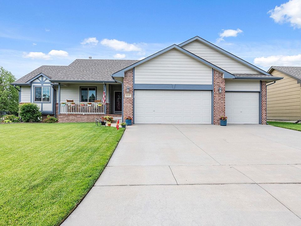 Looking to get into Maize School District? Here is the gem you have been waiting for! Immaculate ranch home with 4 bedrooms, 3 baths, and oversized 3 car garage, super cute front porch, and south facing backyard with covered patio that looks over the neighborhood pond. Yard is fully fenced with sprinkler system and irrigation well, and exterior of home was freshly painted just over a year ago, and roof is just 3 years old! Inside you will find new luxury vinyl flooring throughout the main living space, Brand new quartz countertops and tile back splash in the fully applianced kitchen with pantry and breakfast bar. Three main floor bedrooms, large primary with walk-in closet and private bath; also with new quartz countertops, two sinks, soaker tub and separate shower. The basement has large family room with built in surround sound and plenty of room for pool or sport table. Fourth large bedroom and 3rd bathroom with 2 storage rooms, makes for plenty of space for all your family and all your stuff! This house checks the box for location too! Remember, home is in the acclaimed Maize School District, just down the street from the NW YMCA, and quick drive to New Market Square shopping and dining amenities. This one really does check all the boxes, can't imagine it will last too long, come see it today!