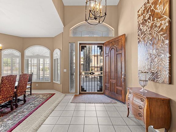 This exceptional 5 bedroom home with no HOA is nestled on a corner lot of a quiet cul-de-sac in the ''Magic'' zip code. This home offers a BRAND NEW ROOF (Oct. 2024), backyard oasis with a newly refinished PebbleTech pool (2024), covered patio & large lawn! The floorpan flows effortlessly with 18' tall ceilings, arched doorways, new plush carpets (2024), tile flooring, plantation shutters, & recessed lighting. The large family room comes with a wet bar & direct backyard access promoting easy entertaining. The updated kitchen features wood cabinets, tile backsplash, granite countertops, SS appliances, with a large island. Updated bathrooms, tons of storage, walk-in closets & huge rooms make this home a must! Located minutes away from Scottsdale, Kierland, shopping, restaurants, golf & more New upgrades completed in October 2024 include: Brand New Roof, comes with a 20 year warranty transferable to the new owner, and upgrades completed in April 2024 include: 3 Stage Reverse Osmosis Water Filtration System, Water softener system, refinished PebbleTec pool & brand new carpet throughout. The generously sized primary bedroom hosts a bountiful walk-in closet and an immaculate ensuite with an oversized granite dual vanity and expanded shower. The entertainer's backyard is comprised of a full-length covered patio, a lush lawn, a fragrant citrus tree, and a sparkling blue pool. Everything you're looking for, you'll find it here! Don't miss out. Act now!