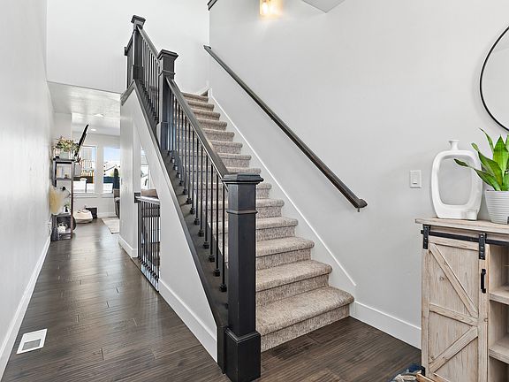 *Immaculate Luxury Townhome with breathtaking Mountain Views in the highly sought-after Bella Vea subdivision in Herriman! Blending luxury living with everyday functionality. 9 ft ceilings. 8 ft doors. HARDWOOD Floors. Modern gas fireplace. *Quartz countertops, custom white staggered cabinetry with crown molding, subway tile backsplash, stainless steel appliances, gas stove, oversized island and a spacious walk-in pantry with a costco door into the garage. Concrete patio, built-in gas BBQ line. No mowing!! *Luxurious Primary Suite featuring an ensuite bathroom with dual-sink vanity, Euro glass shower, dual shower heads and walk-in closet. Wet bar and abundant storage in basement. Agent related to seller. *HOA-covered landscaping & snow removal *HOA amenities: pool, hot tub, pickleball court, and more *Ideally located near Mountain View Corridor, Mountain View Village, Zion's Bank Stadium, Blackridge Reservoir, schools, parks, hiking trails, and major commuter routes.