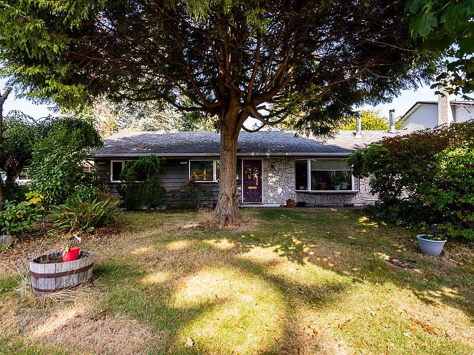 An exceptional opportunity to build your dream home or prime redevelopment! Expansive 66' x123' - 8,124 sq ft rectangular lot w/convenient rear lane access is perfect for a custom residence or duplex w/coach houses, or garden suites. The charming 3-bedrm rancher boasts a family rm, a vaulted-ceiling games rm, & 2 cozy fireplaces, creating a warm and inviting atmosphere. Detached garage/shop features new metal roof (2023), adding durability & value. Modern updates: vinyl windows, laminate flooring, & stylish kitchen countertops, sink & faucet. 5-piece ensuite. Situated on a quiet street of fine homes! Enjoy a fabulous location only 1 block from schools & bus w/shopping & recreation facilities within easy walking distance. Don’t miss this rare gem! Perfect for homeowners and investors alike!
