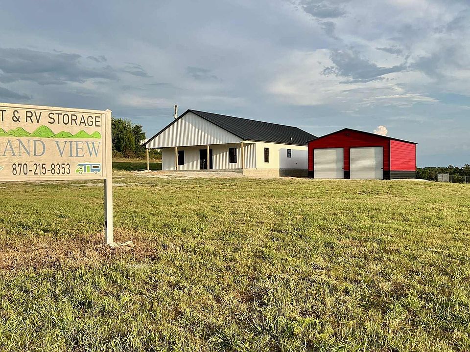 Home and/or Business on nearly 7 AC M/L with 300 ft. of Highway 62/412 East frontage located in Henderson, AR. Minutes from beautiful Lake Norfork & Marina. This property can be sold separately - Home, 2.5 AC M/L or a Secure Gated Storage Facility, 4.5 AC M/L. New Home construction 2400 sq. ft. & 2 bay garage ready for your final touches to make it your own! 2 large bedrooms each with oversized walk-in closets -2 bath. Master bath features a walk-in shower & soak tub. Everything about the layout of this home is spacious! Could easily be converted to 3 BR. 4.5 acres M/L of high fenced storage with an electronic security gate. Property can be accessed from 3 sides and seller would consider selling separately & new survey. All building supplies convey with the home and the home is still in the process of construction. New Central Heating & Air, Well & Septic perk- Note Septic will be installed for new buyers. No restrictions! Call or text for more information!