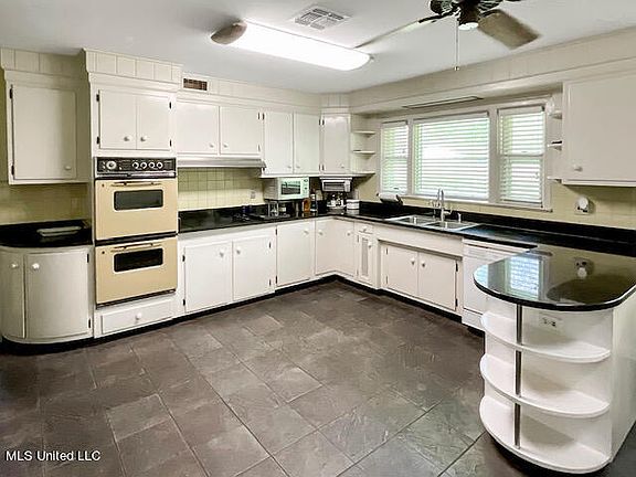 In the heart of Picayune sits this beautiful 3br 3ba home on an acre of land and offers unique style LR, sitting area, DR combo with cork flooring, cedar ceiling tiles, built in bookcases and windows galore. Kitchen offers the original wood cabinets, granite counter tops, panty, built in shelving, breakfast area. The family room has built in bookcases, vinyl flooring, wood burning fp. The en suite offers built in desk, Pergo floors, cedar closet with safe, bath has metal tub and walk in shower. The other 2 bedrooms are spacious. There are 39 windows total thru out the house , Water heat pump w/artesian well, an atrium with Jib crane and window unit, concrete patio, carport, garage additional info on house in documents. Home is run by well, can be put on city water if buyer would like. In summer free hot water with water recovery unit.