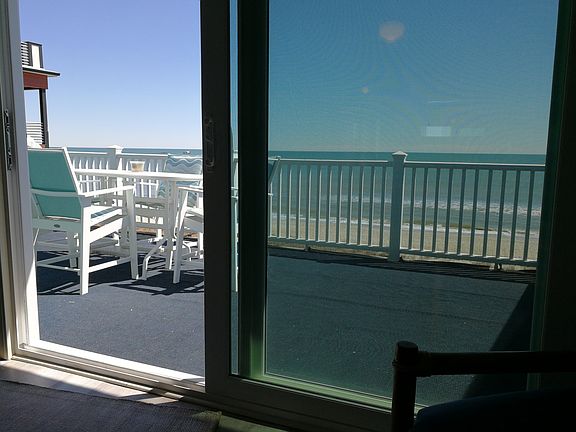 This top-floor unit feels like you live on a boat overlooking the sea! Spectacular views provided, with the added special bonus of buff legs from daily walks on the sand and stairs (there is no elevator in the building). The private deck is perfect for year-round sunning. One queen bed in the front bedroom and two twin beds in the guest bedroom. Cable and high-speed Wi-Fi internet provided. An unassigned on-site parking space is available for 1 car (parking pass provided), with additional paid parking in an adjacent lot and across the street. Grills and picnic tables are below the unit. Non-smoking and pets negotiable. Can't beat the beauty or the price!!
