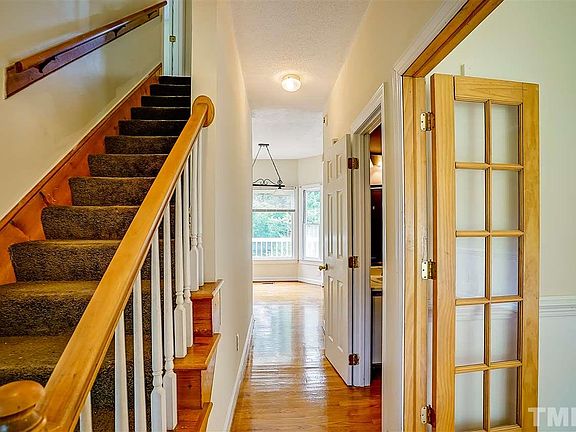 Former model home with a lot of space for that growing family! Beautiful hardwood floors on first floor, new carpet in family room, bay window in dining room. Full bath in spacious basement. Could be guest suite. Lots of possibilities. Open space in the back. Minutes to Downtown, Shopping, Treyburn Corp and Highways. Does need some work but has had some updates. Being sold as is.