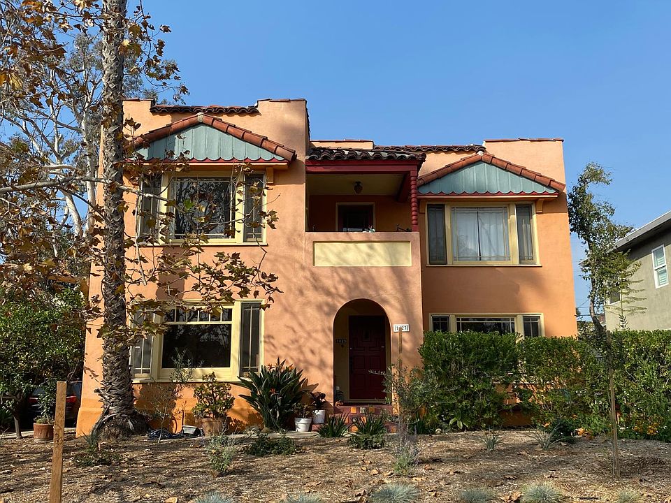 Beautiful three bedroom Duplex in Historic Victoria Park, a gated neighborhood centrally located near metro in mid city. It is 1800 sq ft lower unit of duplex with many original arts and crafts details, including built in cabinets and display cases, nine foot coved ceilings, crown moldings, batchelder tile fireplace, large windows, and refinished hardwood floors in all rooms. All three bedrooms have closets. Additional walk-in closets are in hallway. The main bathroom has original hexagon tiled floor, built-in vanity, and combined bath/shower. The master bedroom has its own half bathroom. Kitchen has been updated with new stainless steel appliances, concrete countertops, and a cozy, sunny breakfast nook. The property is located on a quiet cul-de-sac with wide streets, and graceful mature trees. The ample front yard has new drought tolerant landscaping which will grow into a shady cool paradise. The shared back yard is private and lush, with fruit trees, jacarandas, jasmine, wisteria, and succulents, providing a fragrant serene space for al Fresco Dining and relaxation. Owner pays for water and gardener. The unit has washer/dryer. Kitchen has loads of cabinets, new dishwasher antique stove, and original built in wall ironing board. Heating is forced air and there is new mini split heater/ac in living room. Neighborhood has high walk ability score, with vibrant restaurants and shopping close by. Victoria park was originally laid out by Fredrick Olmsted in the 1920s! There is always parking on the cul de sac, and tenants are free to work out driveway parking share between themselves. The upstairs couple have lived there for 10 years and they are delightful.