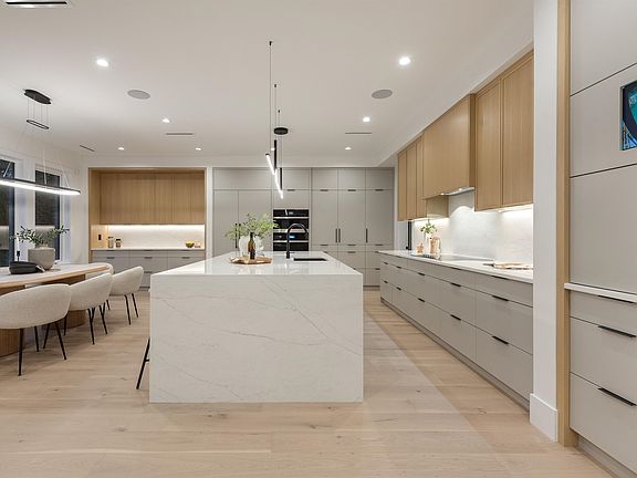 Introducing AMBROSIA II by Quantus Homes. This Westcoast contemporary home offers 5,016 sqft of luxury living on an expansive lot backing onto tranquil greenspace. Inside, this 7 bed/ 6.5 bath residence offers incredible designer finishes, radiant in-floor heating, AC & a host of luxury features. The main floor is an entertainers dream w/ a formal living area & large great room w/ sliding door that leads to your outdoor space. Stunning kitchen w/ premium appliance package, custom millwork, waterfall island & wok kitchen. Upstairs is the primary retreat w/ dual entrances to your opulent ensuite & walk in closet + 3 additional bedrooms & a loft- perfect for kids play area/ work station. The basement offers a large rec room, 2 bed legal suite + 1 bed in-law accommodation.