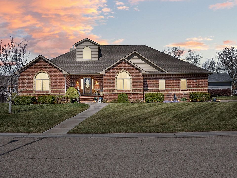 Auburn Hills 5th Addition property for UNDER $100/sf! Located just a few doors down from the golf course and neighborhood pool, this home features a whopping 4355 finished square feet of quality CUSTOM construction. This one-owner ranch home was designed with wheelchair accessibility and ADA standards in mind, with its wide doorways and a solid entry ramp in the 3-car garage. The living room focal point is a handsome gas fireplace, with large windows overlooking a lovely enclosed sunroom. The nearby kitchen with adjoining dining area features an island, amazing pull-out drawer pantry, and loads of counter space. ALL appliances stay with the home - even the washer/dryer! Don't miss the massive formal dining room where memories are waiting to be made around the table with family and friends. Just down the hall, take a moment to marvel at the enormous master suite, with its spacious private bathroom, and walk-in closet. In this split floorplan, two generously sized bedrooms with large closets, a full bathroom in between, and additional storage complete the main floor. Heading downstairs, you can belly up to the full sized bar for a cool drink or opt to relax in the view-out / walk out basement family room with bonus dining area. The massive separate game room will be a favorite area with oodles of space for all the kids' toys or perhaps to be used as a theater room or personal gym. Two additional bedrooms with full bath, storage room, and tornado shelter /safe room round out the basement area. Also note that the heating & cooling is zoned, it has a sprinkler system with irrigation well, and NO SPECIAL taxes. You can huff and you can puff, but you won't blow down this stately structure made of brick & stone. Don't miss the rare opportunity to make it your own today!