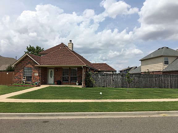 You'll feel welcomed in as you enter this incredibly well-kept home in the Southmoore school district with new floors and recently painted interior. This home features a large master suite and bathroom with private patio, an additional bedroom and guest bath downstairs, and a third full bathroom and bedroom/second living area upstairs. The updated kitchen and dining area feels modern yet inviting. The two car garage faces the rear, accessible by the wide alley drive. Unique to this home is the large side yard made possible by the home's location on the dogleg curve of the road. You'll be amazed at the quality in this home and at an affordable price point! Book your exclusive tour today.
