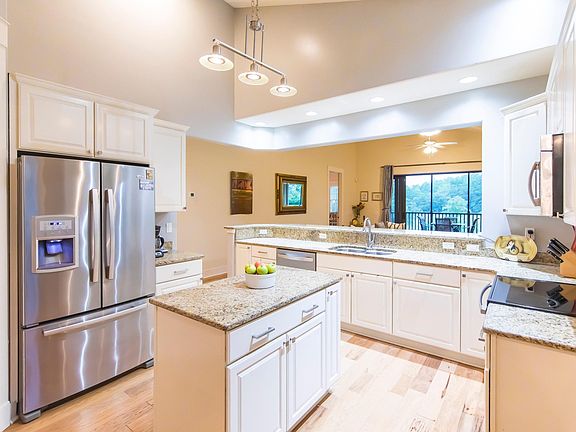 This beautiful home enjoys a screened porch that has gorgeous views and privacy overlooking the 9th hole of the acclaimed Shark's Tooth Golf Course. This spacious open floor plan has split master bedroom, open living room, kitchen and formal dining room with 12ft and cathedral ceilings. This kitchen is complete with beautiful granite countertops and stainless appliances and an island for additional work space with a large bar for extra seating and walk in pantry. The large master suite with a vaulted ceiling has a spacious bath with beautiful cabinets, granite countertops and double vanity, garden tub and separate shower. Best of all, the vaulted ceiling has a skylight for additional natural light. Hardwood flooring throughout, excluding baths and bedrooms and laundry.