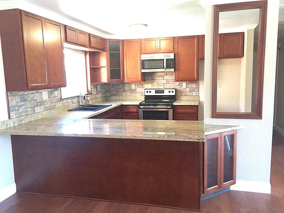 Darling starter home! All new central heating and air, roof, dual pane windows, interior and exterior paint, wood flooring throughout! All new kitchen cabinets with granite counters and stainless steel appliances, new bath. 3 bedrooms, 1 bath, great room floor plan with additional bonus room! Large backyard with concrete patio and dog run.