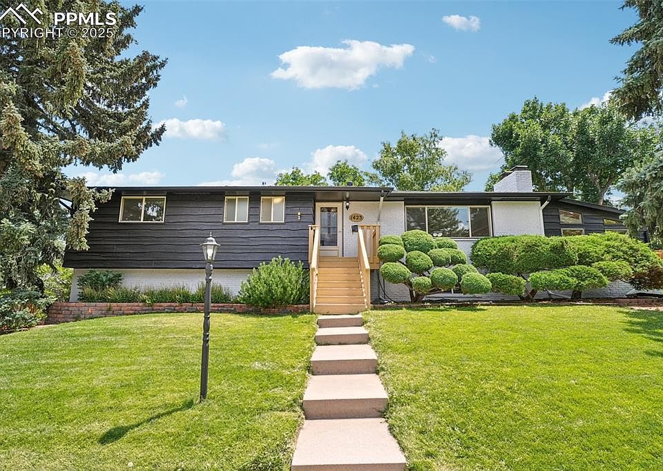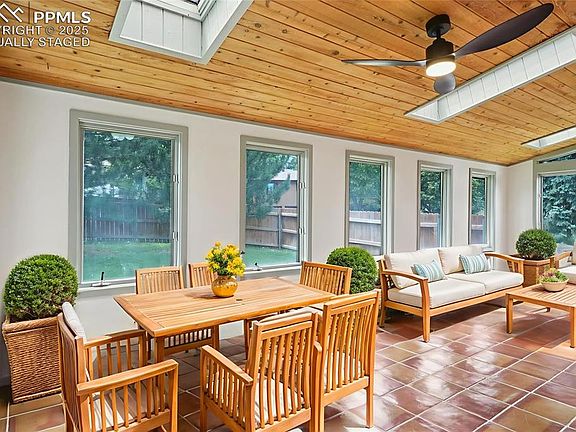 This thoroughly updated ranch is the perfect blend of modern upgrades and classic features. Recent improvements including roof (2023), air conditioning, all new appliances, hot water heater, double paned Pella windows and new durable LVP flooring make this home fully move-in ready. Newly renovated MASTER EN-SUITE bathroom and secondary bathroom, both on the main floor, guarantee comfort and privacy for family or guests. Enjoy sun filled afternoons in the genuine Saltillo tiled sunroom under VAULTED pine ceilings and skylights. Stunning views of Pikes Peak from the living room and master bedroom evoke the best of Colorado Springs. The front and back yards are thoughtfully planned with mature landscaping, full sprinklers and producing apple and peach trees lining the rear driveway. The two car garage has WALK OUT access from the basement, a durable epoxy floor treatment and plenty of space for tools and projects. This property is exceptionally conforming to modern sensibilities and comforts, while retaining the charm of its vintage construction and central location!