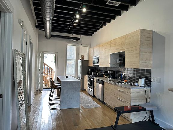 Large 1 bed/1 bath on the first floor of a 3 unit building. Completely redone large eat-in kitchen with stainless steel appliances, wood countertop, kitchen island, with a deck adjoining the kitchen. Refinished hardwood floors throughout the apartment. Bedroom comes with large attached closets and can accommodate queen bed with dressers. High exposed ceilings, private entrances give you condo feeling. Common yard for entertainment Apartment available to rent November 1st, Free shared laundry for personal use. One dedicated parking spot included Centrally located in Noble Square with blocks away from Blue Line station(both Division and Chicago), Steps away from Expressway 12 Month lease term, Water included. Free common washer/dryer for personal use in basement.