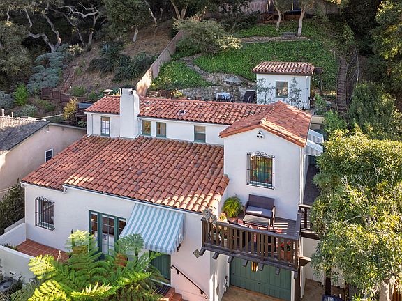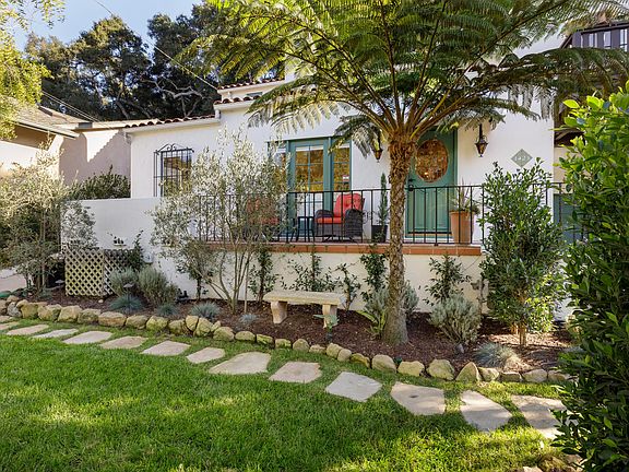 This is the Santa Barbara Spanish home you have been waiting for! This charming home sits well off the street with an elegant curb appeal, manicured landscaping, mature trees, and a stamped concrete driveway lined with landscape lighting. A beautiful front wall and hedges offer privacy in the newly landscaped front yard. As you walk up to the front door you will enjoy wrought iron accents, white stucco walls, Saltillo tile steps, tasteful awnings, and a red tile roof. The homeowners have a pride-of-ownership that we rarely see in this day and age. They have meticulously cared for and improved the property. The front door leads directly into the living space with gleaming hardwood floors and several French windows overlooking the front courtyard. The living room has high exposed beam ceilings and a cozy open-hearth fireplace with tile accents and a gas starter. The kitchen is very functional with cabinet organizers, a pull-out pantry, a display cabinet, a Miele dishwasher, and a newer stainless-steel range, microwave and refrigerator, all complimented by decorative tile counters and backsplashes. Additional storage for Costco/pantry items are hidden away on the first floor for convenient access. Heading upstairs, the oak staircase has double wrought iron handrails lit by a stylish chandelier. The upstairs features a newly created primary en-suite as well as 2 additional bedrooms and an additional bathroom. The light-filled primary bedroom is incredibly spacious, private, and has several floor-to-ceiling windows to enjoy garden views of the backyard. Two separate direct attic accesses within this bedroom provide ample amounts of additional storage for the owners. Depending on your needs, the 3rd bedroom could work as a cozy den or family room if desired. The backyard is very private and completely fenced in. In addition to a detached Spanish-styled shed/office space, there is a flagstone patio that connects to a redwood walkway and balcony, great for outdoor entertaining and enjoying the Santa Barbara weather. There is a winding pathway that leads up the hillside to enjoy city, mountain, and greenbelt views. Your own private canyon retreat! Additional features include: central heating, central A/C, 100-amp electric panel, earthquake retrofitting, and the sewer lateral has been replaced. There is an attached 1-car garage with ample loft-style storage. This home is centrally located in the Alta Mesa neighborhood between The Mesa and Downtown Santa Barbara. The back entrance to Elings Park, a 230-acre private non-profit park open to the public, is just a 1/4 mile away! The Mesa amenities are just a "hop, skip, and jump" from the home which include the Mesa Shopping Center, Lazy Acres Natural Market, Shoreline Park, Leadbetter Beach, and Arroyo Burro (dog-friendly) Beach.