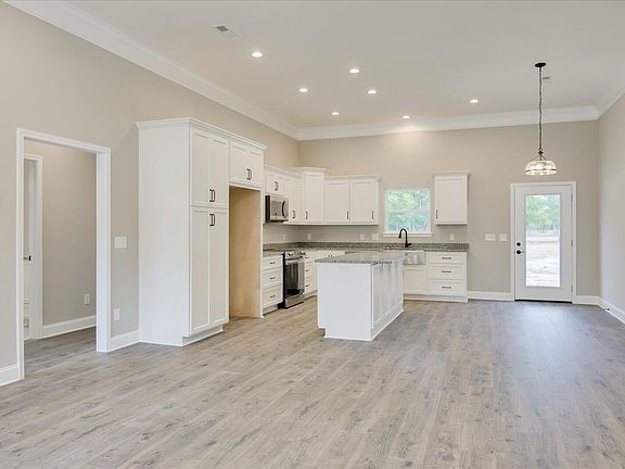 Desirable open floor plan with grand ceilings, crown molding, granite counters in kitchen and baths. Beautiful custom cabinetry. 3 bedrooms and 2 baths. The spacious closets have custom shelving. The bathrooms have tiled floors and rest of home has luxury vinyl plank floors. The mud room leads to an oversize laundry room. 2 car garage with concrete driveway and walk way.