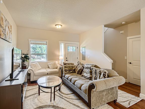 Beautiful 3 bedroom, 2 1/2 bath townhome with front porch, 2 car attached insulated garage, and in a terrific location. Open floor plan, newer waterproof vinyl floor upstairs. Alder kitchen cabinets, kitchen island/eating bar, 1/2 bathroom on the main floor with 2 full bathrooms and laundry room upstairs. Vaulted large master suite with huge walk-in closet, ceiling fan, double sink vanity and soaking/garden tub. A/C. Refrigerator, washer and dryer will stay. Easy access to grocery, bus stop, park, Oregon city high school, CCC college.