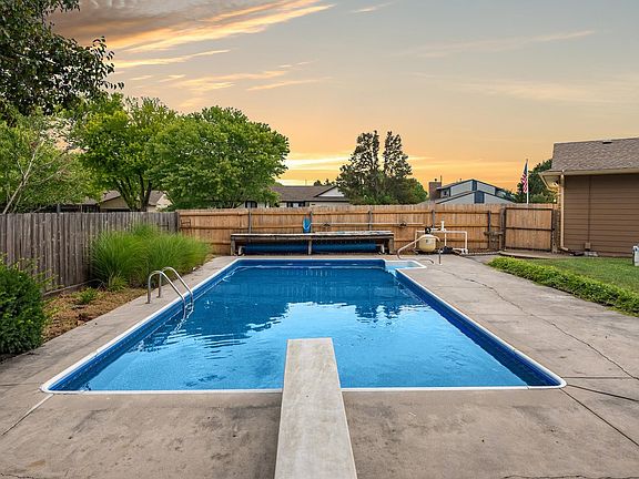 Welcome home to this 4 bed, 2.5 bath corner-lot property in East Wichita, complete with an oversized sideload garage and a sparkling 16x32 inground pool. The exterior blends stone accents, a covered front porch with dual swings, and lush landscaping for standout curb appeal. Inside, the sunken living room is anchored by a floor-to-ceiling stone fireplace and built-in wet bar-perfect for relaxing or entertaining. The kitchen features updated LVP flooring, stone-style counters, a tile backsplash, breakfast bar, and a bay-window nook overlooking the backyard. A flexible front room works equally well as formal dining, office, or lounge space. Main-floor laundry, pantry storage, and a guest half bath add convenience. Upstairs, the spacious primary suite offers a walk-in closet, dual vanity, updated fixtures, and a shower/tub combo. Three additional bedrooms provide plenty of space-one with a walk-in closet, another with a smart dual-layout design-plus a full hall bath. The finished basement expands your living area with a large rec room (pool table included!) and a dedicated storage room. Outside, the fenced backyard features a sparkling inground pool with a brand-new liner, rebuilt stairs, and auto chlorinator-all updates completed this summer that make the pool feel like new and ready for years of enjoyment. Extras include the oversized 2-car sideload garage with epoxy floors, zoned HVAC systems less than 10 years old, an attic fan, and an underground sprinkler system on an irrigation well. Conveniently located near highways, shopping, dining, parks, and schools, this home blends comfort, function, and fun. Schedule your private showing today!