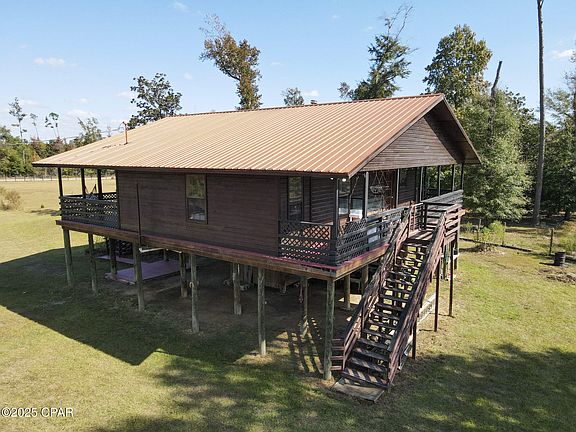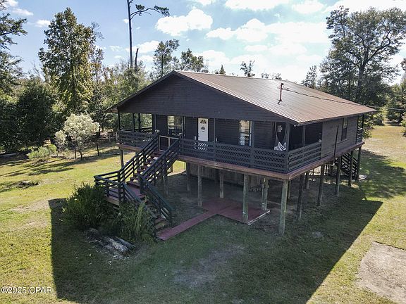 Escape to a charming country retreat on 10 acres in Altha, FL near the Chipola River. This beautifully maintained 2-bedroom, 2-bath home was built in 1994 on sturdy stilts and offers 1,180 square feet of comfortable living space plus wrap-around porches. This place is perfect for relaxing, entertaining, or soaking in the serene views of your own wooded paradise. Paint inside and out was recently freshened. The beautiful lap siding was installed with the robust protection of a 50-year warranty stain and sealant. The metal roof was replaced in 2018 and a new septic system and drain field were installed in 2022. Whether you're looking for a full-time residence, a weekend getaway, or an income-producing vacation retreat, this charming home offers the perfect blend of rustic character and modern updates. Don't miss your chance to own a slice of quiet country life close to the water! Schedule your tour today!