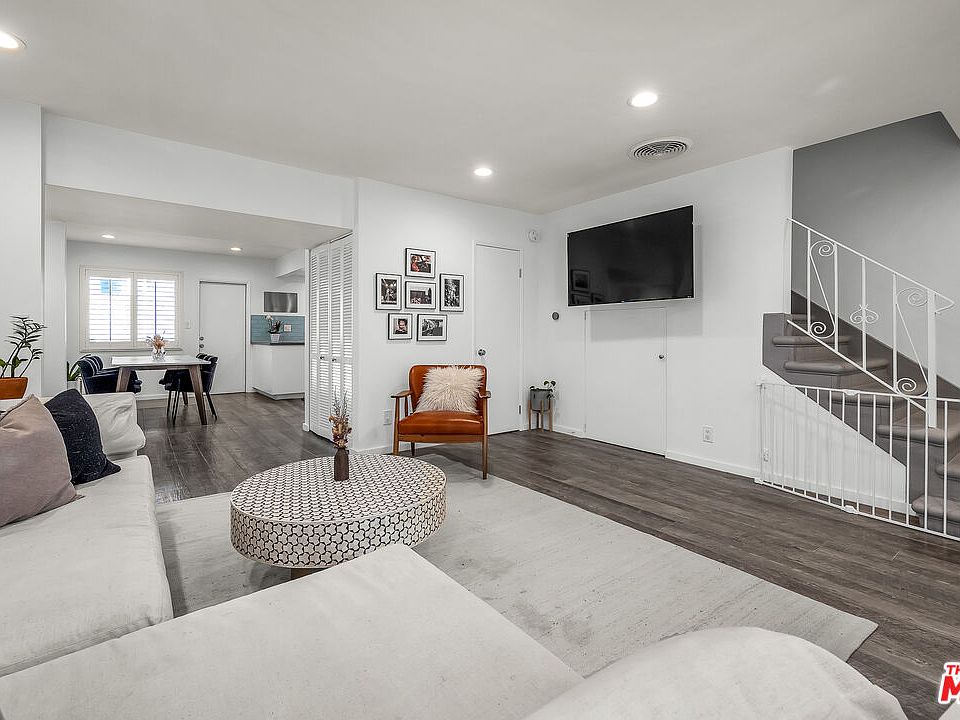 Welcome to this beautifully updated 2-bed, 2-bath Town home in the heart of Sherman Oaks! A great S. of the Blvd location. Private entrance & patio tucked behind gated & lush landscaping. This bright two-story home offers a spacious outdoor patio, perfect for entertaining. Inside, you'll find wood plank porcelain tile flooring & plantation shutters throughout the open-concept first floor. The living room features a wall of windows with views of your private outdoor space, while a cozy nook under the stairs can be customized for storage, a pet area, or a mini play space. Recessed lighting & a stylish modern updated bathroom downstairs with custom storage cabinets. The formal dining area flows seamlessly into a fully remodeled kitchen with quartz countertops, custom cabinetry, a glass tile backsplash & top-of-the-line appliances including a GE stove, microwave/convection oven & Bosch dishwasher. A built-in laundry closet, great storage & character complete the first floor. Upstairs, the spacious primary bedroom hosts large picture windows with generous custom & cedar lined closets with shelving to add more space. Both 2nd floor bedrooms have ample closet space with custom-mirror sliding doors. The updated bathroom features a stunning deep slipper tub & a separate shower perfect for unwinding. New water heater & HVAC recently installed for maximum efficiency, comfort & peace of mind. Can be sold with some furnishings. BONUS: Extra attic storage, updated plumbing, HOA ($600/month), and a brand-new renovated community pool! Move-in ready & close to everything, dining, shopping with easy freeway access.