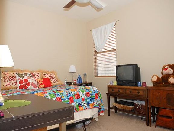 Sharp property with great curb appeal! 3 bedrooms plus an office or den off living room, it has a closet just needs double doors to be a 4th bedroom ! A great room, split bedroom plan with the master in the back of the home.Has a gas fireplace and wired for surround sound. Fantastic kitchen with oak cabinets and large island. Black appliances and built in microwave.wood laminate,tile and carpet approx 3 years old. Ceiling fans thruout and a programmable thermostat. Front security screen door,extended covered patio, auto yard watering system,block fence and double wide gate on the side for your toys ! No two story homes behind you, close to shopping and restaurants.Wood blinds on dual pane windows,double sinks in the master and a walk in closet.Interior wall pest control system !