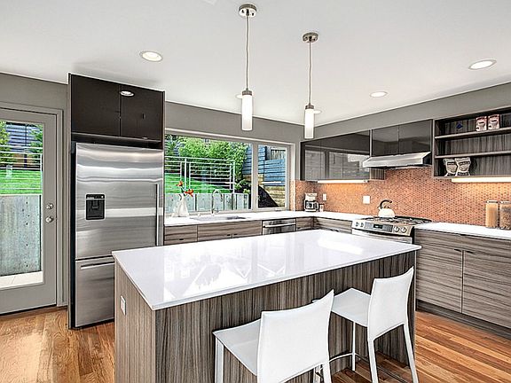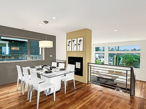 Exquisite new modern home in Madrona designed by Playhouse Design Group! Perched high above street with a lovely territorial outlook, this unique multilevel design showcases an island kitchen with access to patio and backyard, dining area, fireplace and sunken living room. Three bedrooms, a full bath and spacious utility and storage share the next floor up. Your master retreat tops it all off with a spa-like custom tiled bath, wet bar area and both private and guest access to the rooftop deck.