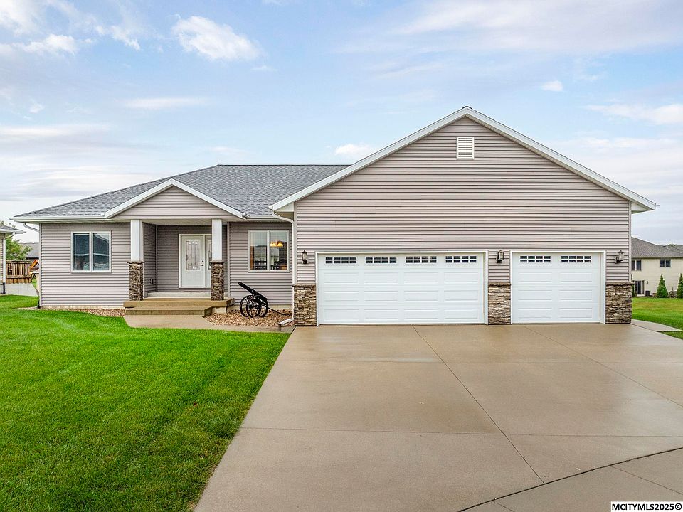 One Owner, Walk-Out Ranch Home in Stone Pillar! Open great room floor plan with lots of natural light. Great for entertaining or quiet nights in. Mission style kitchen cabinets with an oversized island and bonus pantry closet. Spacious primary suite with an oversized ceramic step-in shower, double sinks, walk-in closet and a bonus west facing nook great for watching the sunsets! A second bedroom, full bath, main floor laundry and designated office area complete the main level. You will love the natural daylight in the walk-out design of the lower level. It's ready to complete and customize with the studs, insulation, electrical & bathroom area established. Potential of 2 additional bedrooms along with a family room & additional storage. Sliding glass doors lead out to the patio situated below the deck. There is a comfort and ease to this home! Situated on a great lot, tons of potential to expand by finishing the lower level and priced accordingly! Make the call today!