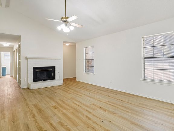 Gas fireplaceNew dishwasherLarge covered patioMassive peaceful backyardWood-look tile floorsCozy single-story homeVaulted ceilings
