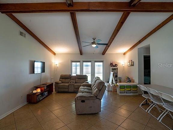 This beautiful four-bedroom home located in North Brandon features 4 bedrooms, 2 baths with a side entrance 2-car garage, Galley kitchen with maple wood cabinets, and additional cabinets added in the eat-in area for more storage. Appliances are Maytag, French-door-style refrigerator, double-door oven, dishwasher and Microwave. There is tile throughout the home except for the bedrooms which are carpet. Great room floor plan with vaulted ceilings accented by wood beams and French doors that leads out to a large screen-enclosed porch. Split bedroom floor plan with 3rd bedroom having direct access to main bath; which could also be used as a future pool bath due to its access to the back yard. Plantation shutters in all the bedroom windows and dining area. In addition to the large screen enclosure, there is a large concrete pad approximately (8 X 10) for grills or other outdoor furniture. The property is completely fenced in for a private back yard. Lakeview Village is a deed restricted community located just 6 miles East of Tampa and is conveniently located close to Interstates 1-4, I-75 and the Selmon Expressway. The community boarders Lake Mango. There are three county parks, including one dog park easily accessible to the community. Many assorted restaurants, shopping, movie theater and more. Schedule your showing today!