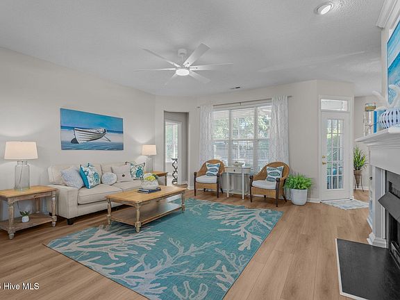 The spacious living area is anchored by a cozy fireplace, perfect for relaxing evenings, and flows effortlessly into a screened-in porch that overlooks the serene backyard—an ideal spot for morning coffee or evening gatherings.
