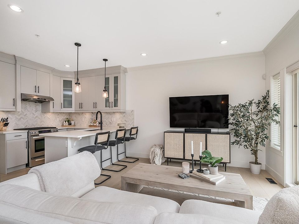Rarely available in the Avonlea development! This substantially renovated 4-bed, 3-bath townhome offers stunning ocean views from both the main living area and the primary bedroom. Set within an exclusive 5-unit community, it features a private back-alley entrance to a double garage, modern upgrades throughout, and a bright open-concept layout with two spacious living areas on the main floor. With three balconies, including a top deck off the master showcasing beautiful ocean views. Walking distance to all the amenities White Rock has to offer, including the newly built Thrifty Foods, Semiahmoo Mall, Save-On-Foods, and countless shops, cafés, and restaurants. In the Semiahmoo Secondary and HT Thrift Elementary catchments, and just steps from White Rock Beach!