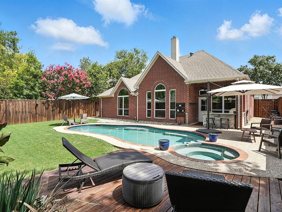 Immaculate Coppell Home with an Outdoor Oasis! Welcome to 1424 Falls Rd, a fully updated 4-bedroom, 2.5-bath, 2,321 SF home in the prestigious Eagle Point Village at Riverchase. Designed for both comfort and elegance, this home features modern finishes, thoughtful upgrades, and a backyard retreat perfect for entertaining. Inside, enjoy vaulted ceilings up to 15 ft, floor-to-ceiling windows, and an airy, open feel. The chef’s kitchen (2019) showcases Bosch & KitchenAid appliances, leathered quartzite counters, LED and under-cabinet lighting, and freshly painted cabinetry. The luxurious primary bath (2020) offers marble floors, a frameless glass shower, custom cabinetry, and quartz countertops. Every bathroom is outfitted with Toto Drake elongated toilets, and the home features updated satin nickel hardware, a glass storm front door, crown molding, and quartzite windowsills throughout. Backyard highlights: • Saltwater pool & spa with PebbleTec finish and new tile (2015) • Pool pump (2021), booster pump (2024), and saltwater generator (2020) • Built-in outdoor kitchen (2023) with gas grill, quartzite counters, stainless ice chest, and storage • Pet-proof fencing, updated fans, and a freshly stained deck (2025) Smart & mechanical upgrades: • HVAC and electrical panel replaced (2019) • Whole-house electrical surge protector (2019) • Water heater and Tesla Gen 3 charger (2024) • Nest Protect smoke- CO alarms, Nest cameras (indoor & outdoor), Ecobee thermostat, MyQ garage system, and WiFi smart lock Eligible for Limited Open Enrollment to Coppell ISD. Located just steps from a park and a short walk to Riverchase Golf Course. This home offers luxury, location, and lifestyle — schedule your private tour today!