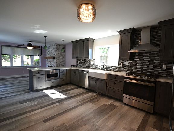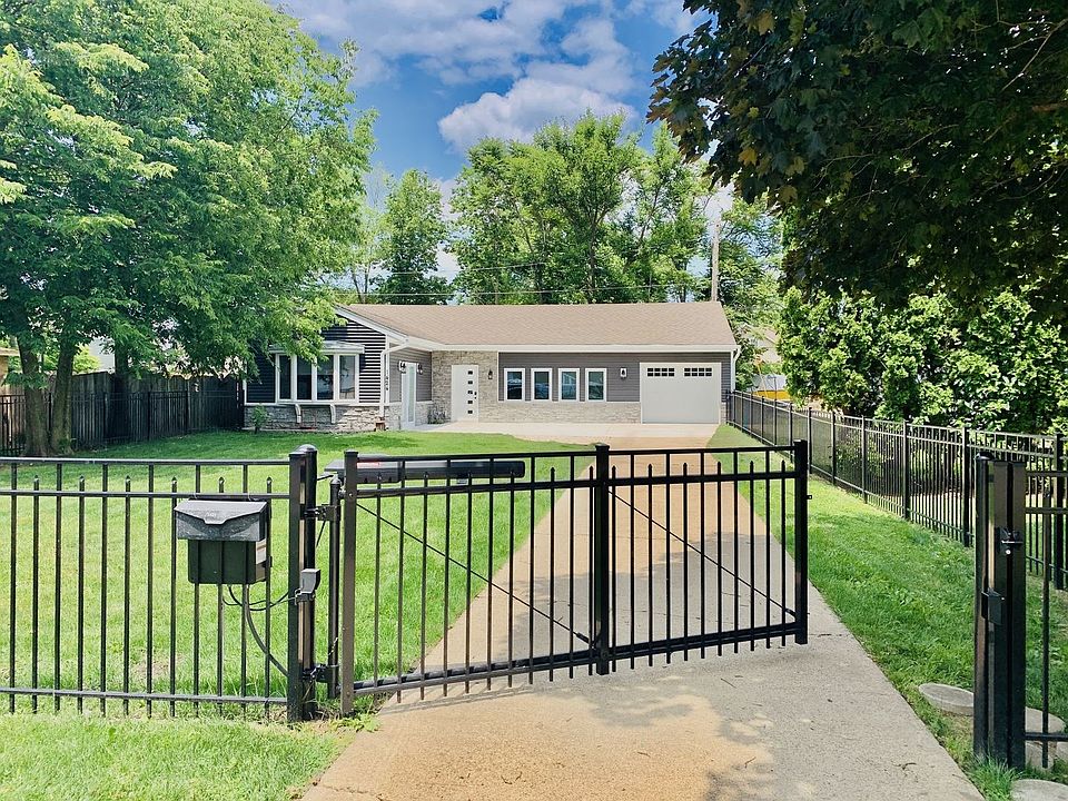 Enjoy this recently remodeled Modern ranch home. Make the grand entrance into the property through the private wrought iron gate and fenced in property (January 2020). New flooring throughout the home. Beautiful and spacious kitchen sure to please Gordon Ramsay himself including; custom cabinets with crown molding, stainless steel appliance with built in microwave, farm sink and quartz countertops. Dining room is conveniently located off the kitchen. You'd appreciate the fireplace and custom mantle. The bay window and sliding doors offer and abundance of sunshine and natural light. Main floor Bathroom remodeled down to the studs with a double vanity. Nice sized bedrooms with great storage space in the walk-in closets. Main floor Laundry room with sink. New furnace, AC, windows, siding and gutters(2019). New concrete in both back yard and front(2020). Large 1 car finished garage with plenty of room in the back for storage or work shop. The backyard has a poured patio for an enjoyable evening with friends. All dimensions are approximate. Be sure to take the Virtual Tour!