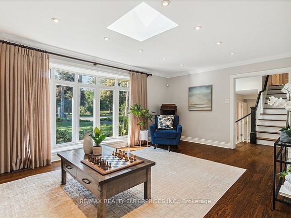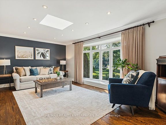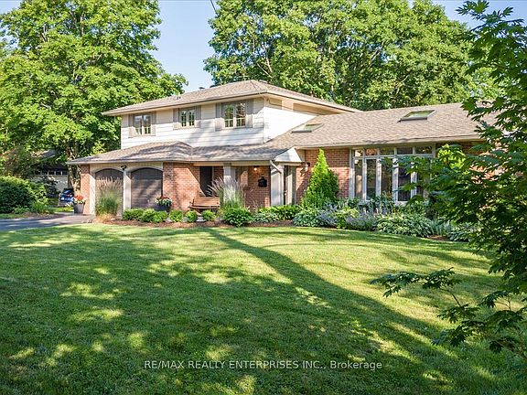 Lorne Park Family Home Sitting On An 80' X 125' Corner Lot, Siding Onto A Quiet Crt Location. Nestled Amongst Mature Trees & Offering Extensive Privacy. Landscaped Perennial Gardens ('21-'23), Fenced-In Yard, Interlock Front & Rear Patios, Deck ('20), Kids Play & Gas Line For BBQ - An Outdoor Retreat! 3 Levels of Finished Interior Living Incl Open Concept, Eat-In Kitchen W/Granite Counters, Under Cabinet Lighting & Sliding Door W/O. Open To A Designated Dining. Smooth Ceilings Throughout, Pot Lights Galore! Living Room Provides Crown Mouldings, Natural Sunlight Via Skylight & An Oversized Bow Window Facing Front Gardens. Renovated Main Flr Mud/Laundry W/W/O To Yard ('18). Family Room W/Tray Ceilings, Gas Fireplace, Custom B/In's. Plus 3rd W/O To Yard! Primary W/Bay Window Overlooking Garden, 4 Pc Ensuite, His/Her Closets. Finished Lower W/Rec. Room & Bedroom (+1)/Den/PlayRoom.