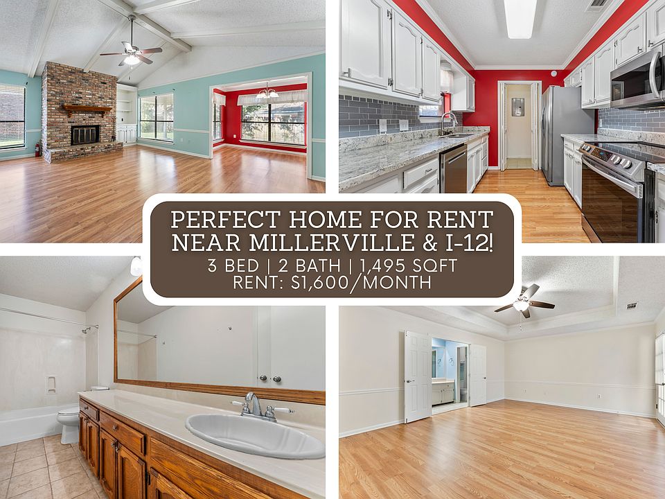 FOR RENT: 3 Bedroom, 2 Bath Home - Near Millerville Rd & I-12! Welcome to this charming 3-bedroom, 2-bathroom home in the quiet Country Ridge subdivision, conveniently located off Millerville Rd near I-12. With 1,495 sqft of living space, this well-maintained gem is move-in ready with a recently upgraded kitchen featuring stainless steel appliances; washer and dryer also included. This home offers a spacious den with cathedral ceilings and a cozy wood-burning fireplace. The oversized master suite boasts tray ceilings, dual closets and access to a private courtyard. Generous amount of closets and storage space throughout. Enjoy the tranquil outdoors with a large courtyard and quaint wrap-around porch in the front and a covered patio and secure fencing in the back. New roof installed in 2020. Don't miss out on this delightful home! 12-month lease and $1,600 deposit. No smoking, no pets. Tenant is responsible for yard maintenance and utilities, including internet. Income support documentation must be submitted for each adult (18+) prior to showings.